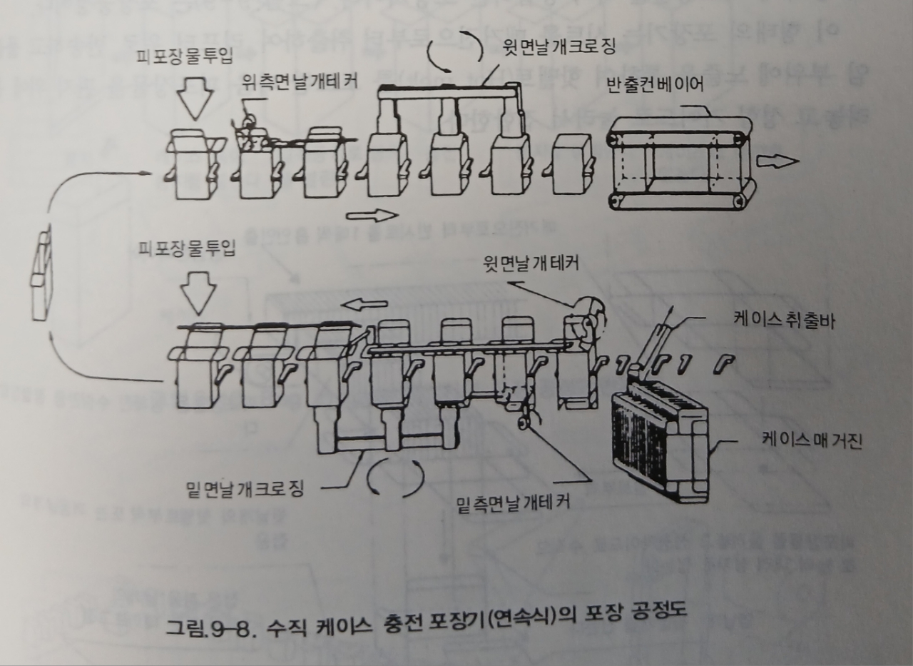 - 케이스에 내용물(낱포장물)을 담고, 날개를 닫는(밀봉) 기계